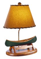 | Rustic Lamp with Mica Panels | Pinecone Lamp with Suede Shade | Rustic Canoe Lamp with Lacing Effect on Kraft Crinkle Shade |